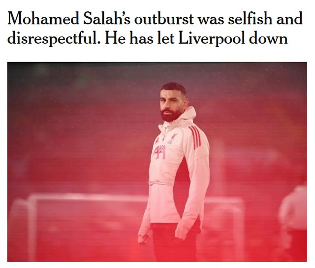 萨拉赫效力利物浦8年多,从未像这样长时间接受采访。TA直言,这是萨拉赫精心策划的、火力全开的表态,这样的点火既自私又无礼,让利物浦感到失望。
