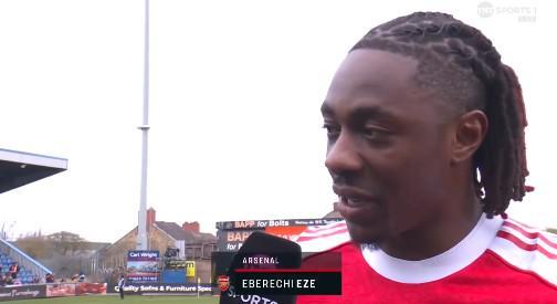 足总杯1/8决赛,阿森纳客场2-1战胜曼斯菲尔德,本场比赛替补建功的埃泽赛后接受了TNT体育的采访。